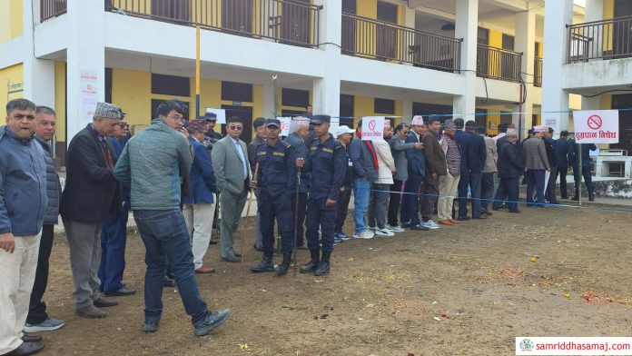 राष्ट्रिय सभा सदस्य निर्वाचनमा मतदान गर्न लामवद्ध जनप्रतिनिधिहरु ।