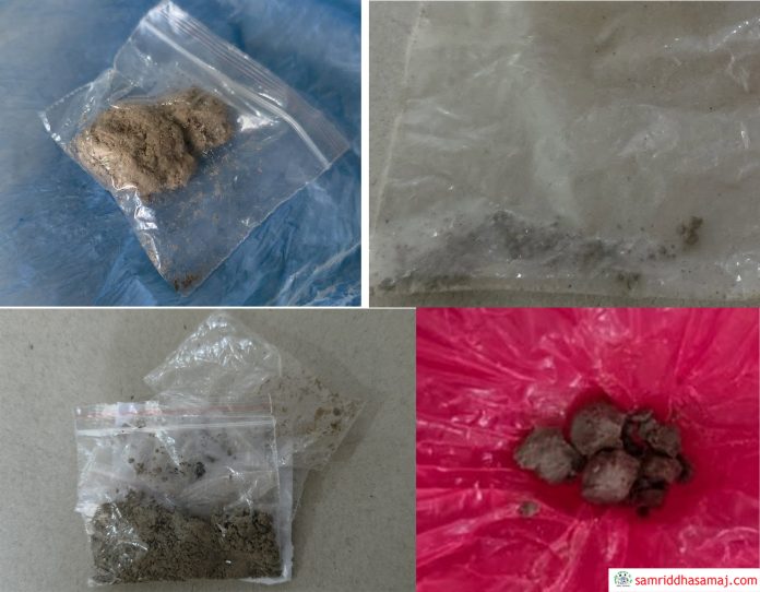 प्रहरीले बरामद गरेको लागूऔषध खैरो हेरोइन ।