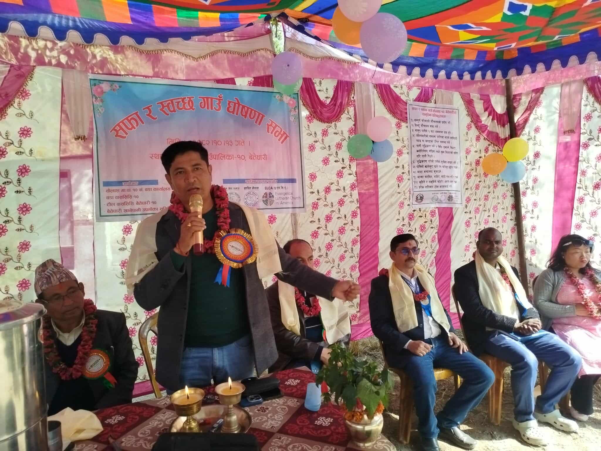 कार्यक्रममा गाउँपालिका उपाध्यक्ष बालकुमार मल्लले नेपाल सरकारको दीगो विकाससँग जोडिएको सरसफाई र खानेपानी क्षेत्रलाई व्यवस्थित र आवश्यक पूर्वाधारका कार्यहरु भइरहेको बताउनुभयो । गाउँ, टोल र समुदायलाई सफा र स्वच्छ बनाउने अभियान सबै वडा वडामा पुग्ने लक्ष्य गाउँपालिकाको रहेको बताउनुभयो ।
