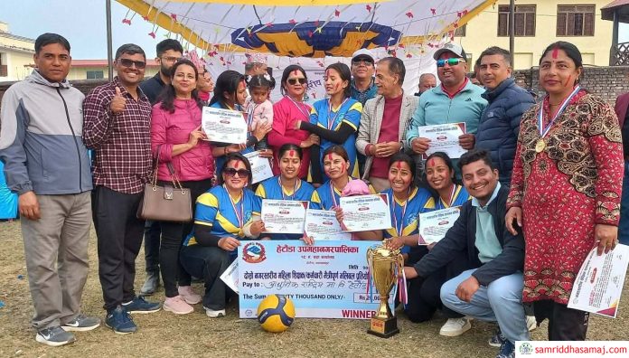 हेटौँडा : दोस्रो नगरस्तरीय महिला शिक्षक मैत्रीपूर्ण भलिबलको उपाधि हेटौँडा–४ स्थित आधुनिक राष्ट्रिय माध्यमिक विद्यालयले जितेको छ । शनिबार हेटौँडा–१८ स्थित ज्योति माध्यमिक विद्यालयको खेलमैदानमा भएको फाइनल खेलमा हेटौँडा–१८, हर्नामाडीस्थित ज्योति माविलाई सोझो सेटले हराउँदै आधुनिकले उपाधि जितेको हो ।