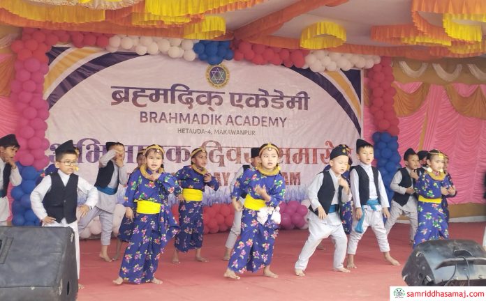 हेटौँडा : हेटौँडा–४ स्थित ब्रह्मदिक् एकेडेमीको अभिभावक दिवस शनिबार सम्पन्न भएको छ । विद्यालय परिसरमै विद्यालय व्यवस्थापन समितिका अध्यक्ष कुमार बानियाँको अध्यक्षता तथा वडाध्यक्ष नवीन सिग्देलको प्रमुख आतिथ्यमा अभिभावक दिवस समारोह भएको हो ।