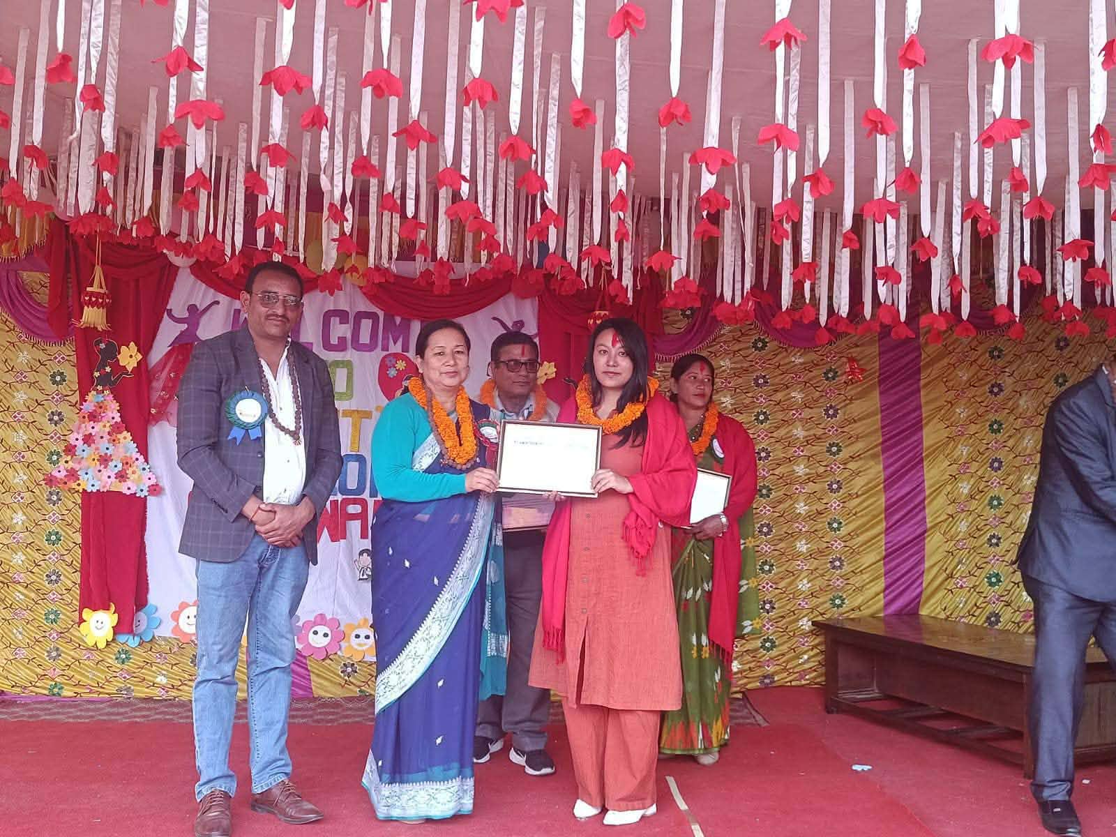 हेटौँडा उपमहानगरपालिकाकी नगरप्रमुख मीनाकुमारी लामाको प्रमुख आतिथ्यमा भएको कार्यक्रममा विद्यालय व्यवस्थापन समितिका निवर्तमान अध्यक्ष शम्भु रिमाल, शिक्षक अभिभावक संघकी निवर्तमान अध्यक्ष सञ्जिता थापा र निवर्तमान लेखापाल ईसा गुरूङलाई सम्मान गरिएको छ ।