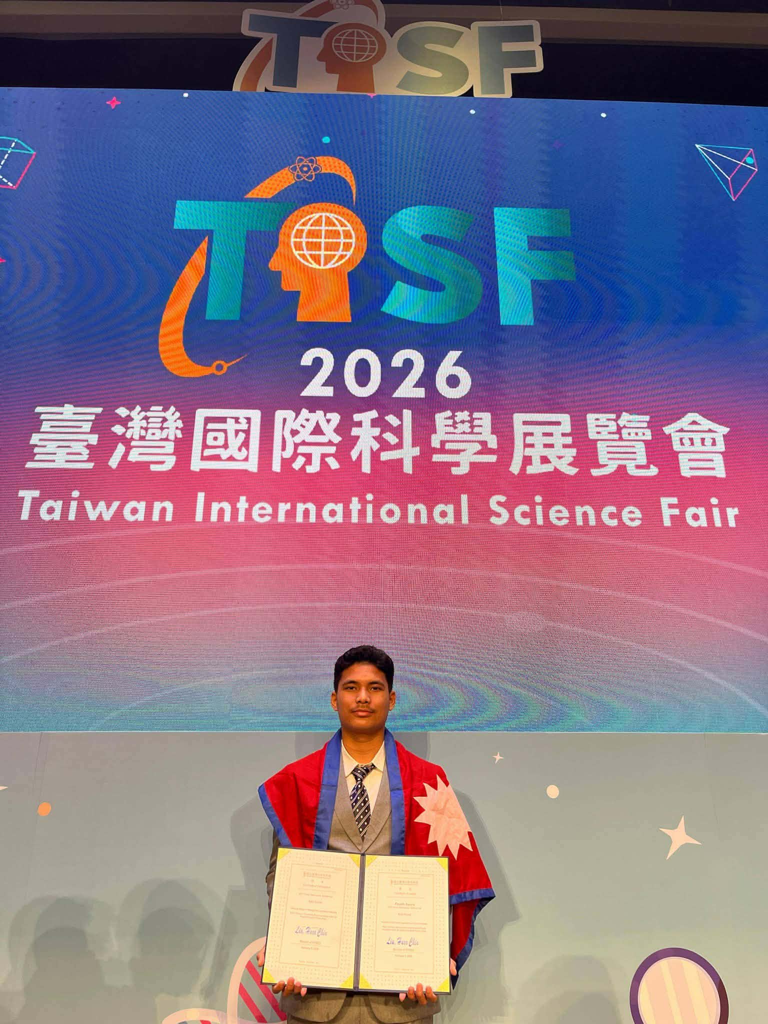 हेटौँडाः ताइवानमा सम्पन्न ताइवान अन्तर्राष्ट्रिय साइन्स फेयर–२०२६ मा हेटौँडाका सफल कुमालले चौथो स्थान हासिल गर्न सफल भएका छन् । राष्ट्रिय ताइवान विज्ञान शिक्षा केन्द्रको आयोजनामा फेब्रुअरी २ देखि ७ तारिखसम्म भएको वैज्ञानिक मेलामा हेटौँडाका कुमालले बनाएको ‘साइरन अफ होप’ प्रोजेक्टले वातावरणीय इन्जिनियरिङ विधामा चौथो स्थान हासिल गर्न सफ भएको हो ।