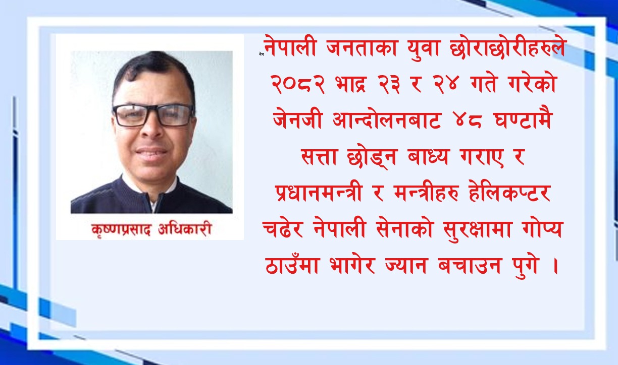 यी र यस्ता अनेक विकृति र विसंगतिका कारण नेपाली जनताका युवा छोराछोरीहरुले २०८२ भाद्र २३ र २४ गते गरेको जेनजी आन्दोलनबाट ४८ घण्टामै सत्ता छोड्न बाध्य गराए र प्रधानमन्त्री र मन्त्रीहरु हेलिकप्टर चढेर नेपाली सेनाको सुरक्षामा गोप्य ठाउँमा भागेर ज्यान बचाउन पुगे । यो सबै गतिविधि उनीहरुकै दम्भ र घमण्डका कारण उत्पन्न हुन पुग्यो । देशको यस्तो अवस्थाको कारण आज कुनैपनि नेपालीका सन्तानहरु आफ्नो देशमा पसिना बगाउन छोडेर विभिन्न देशहरुमा कामको सिलसिलामा तथा अध्ययनका लागि आफ्नो देश र आफ्नो परिवार छोड्न बाध्य भएका छन् । कोही पैसा कमाउन र कामको खोजी गर्न खाडी मुलुकमा गएर पसिना बगाउन बाध्य छन् भने कोही अध्ययनका लागि (उच्च शिक्षा) युरोप र अमेरिका पुग्ने पनि कम छैनन् । नेपाली युवाहरु आफ्नो देशमा बसेर उच्च शिक्षा हासिल गर्न र रोजगारीको प्रारम्भिक अवसर हासिल गरी नेपालमै बस्न पटक्कै रुचाउँदैनन् ।