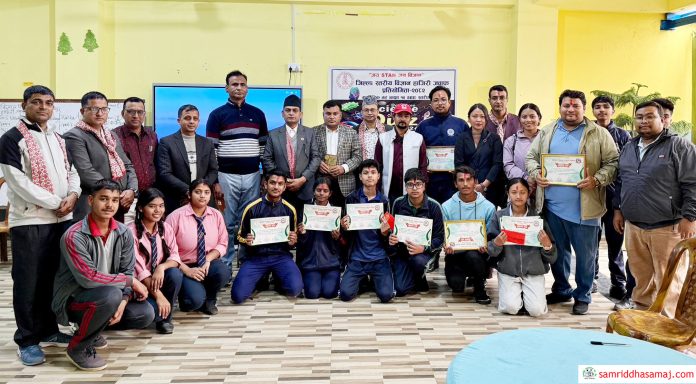 हेटौँडा : मकवानपुर जिल्लास्तरीय विज्ञान हाजिरीजवाफ प्रतियोगितामा हेटौँडा–५ स्थित बालज्योति माध्यमिक विद्यालयका विद्यार्थी शुभम खनाल र अञ्जली कुमारी प्रथम भएका छन् । शनिबार विज्ञान शिक्षक समाज मकवानपुरको आयोजनामा सम्पन्न माध्यमिक तह (कक्षा १०) स्तरीय प्रतियोगितामा शुभम र अञ्जलीको समूह प्रथम भएको हो ।
