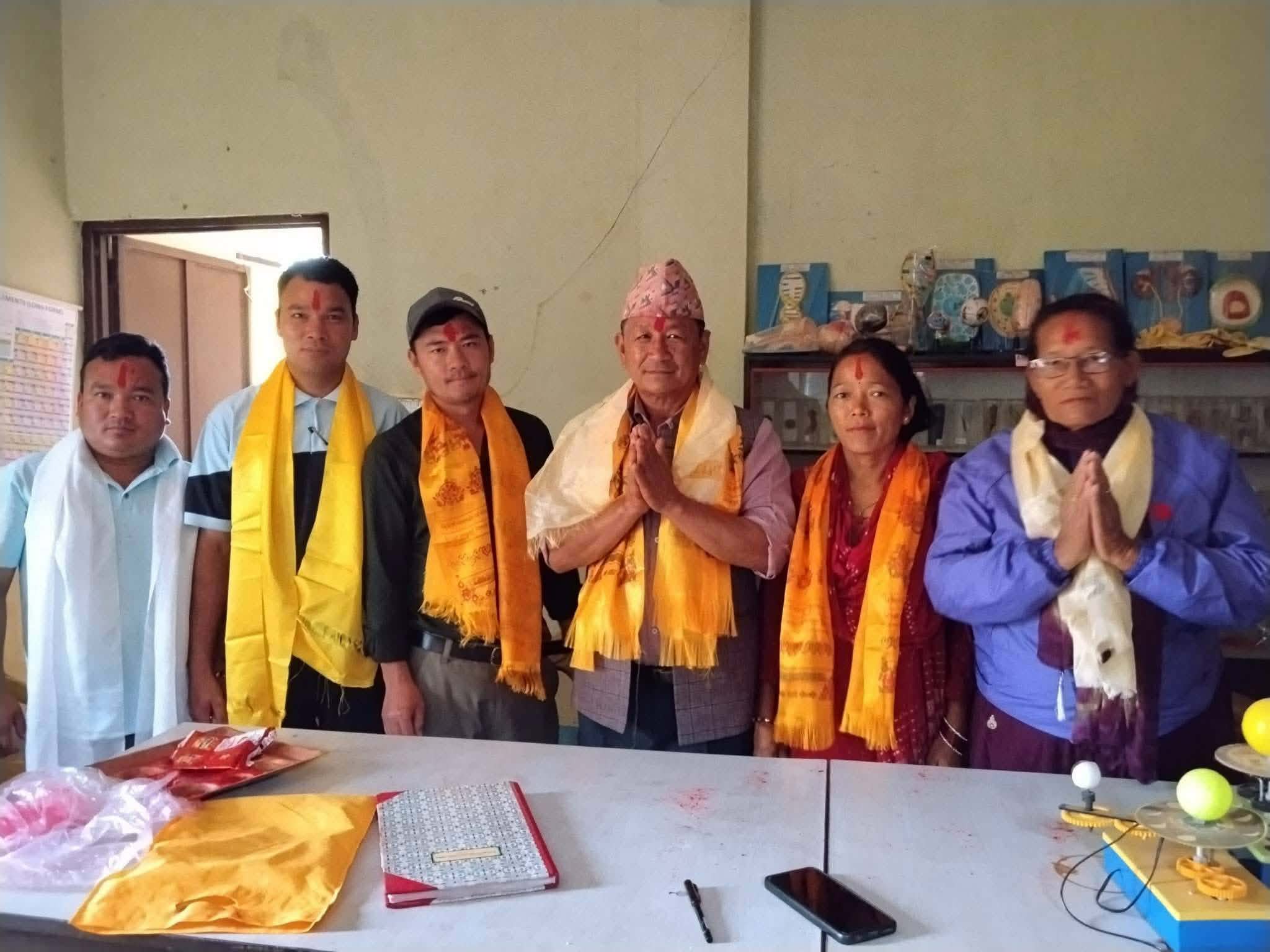विद्यालय व्यवस्थापन समितिको सदस्यमा सञ्जयकुमार थोकर, जरिमाया वाईबा, रोदन घलान, भीममाया न्यासुर र लालकुमारी थिङ चयन हुनुभएको विद्यालयका प्रधानाध्यापक इशु लामाले जानकारी दिनुभयो । बुधबार ४ जना अभिभावक प्रतिनिधि चयन गरेको थियो । अभिभावक प्रतिनिधिको रुपमा ज्ञानबहादुर, सञ्जयकुमार, भीममाया र लालकुमारी चयन हुनुभएको थियो । जरिमाया र रोहद २ जनालाई मनोनित गरेपछि बिहिबार व्यवस्थापन समितिको अध्यक्ष चयन गरिएको हो ।
