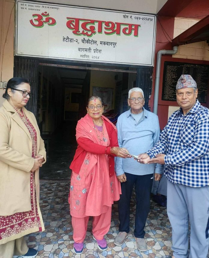 हेटौँडाः हेटौँडा–२, चौकीटोलस्थित ओम बृद्धाश्रममा दुई महिनामा २ लाख ७७ हजार रुपैयाँ नगद र खाद्यान्न प्राप्त भएको छ । आश्रममा माग र फागुन महिनामा २ लाख ७७ हजार ११ रुपैयाँ बराबर नगद प्राप्त भएको छ भने खाद्यान्न पनि प्राप्त भएको आश्रमका अध्यक्ष सिद्धिलाल श्रेष्ठले जानकारी दिनुभयो ।