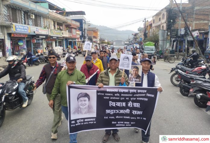 हेटौँडा : नेपाली र नेपाल भाषा पत्रकारिताको क्षेत्रमा उल्लेखनीय योगदान पु¥याउनु भएका पत्रकार सुरेश किरण मानन्धरको निधन भएको १३ औं दिनको पूण्यतिथिमा हेटौँडामा शोकसभाको आयोजना गरिएको छ । भाषा आयोगको सदस्य समेत रहनुभएका मानन्धरको फागुन २५ गते हृदयघात भई निधन भएको थियो ।