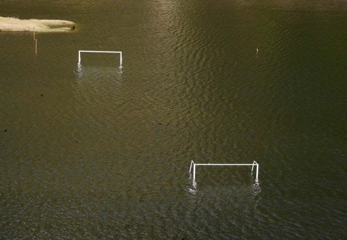 हेटौँडा : मकवानपुरको उत्तरीक्षेत्र इन्द्रसरोवर गाउँपालिकास्थित कुलेखानी जलविद्युत आयोजनाको जलाशयमा पानीको सतह बढेसँगै जलाशयसँगैको खेलमैदान जलमग्न भएपछि देखिएको फुटबलको गोलपोष्ट । मुलुकको पावर व्याकअपको रुपमा रहेको कुलेखानी जलविद्युत आयोजना आवश्यकताअनुसार मात्रै सञ्चालन हुने गरेको छ ।