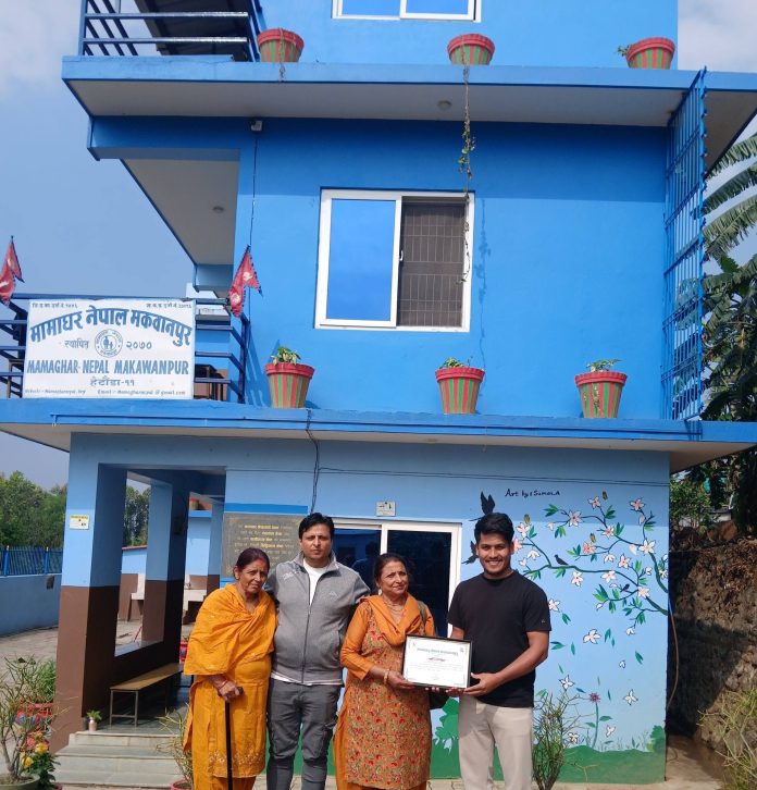 मामाघर नेपालका सहयोगीलाई आभारपत्र प्रदान गरिँदै ।