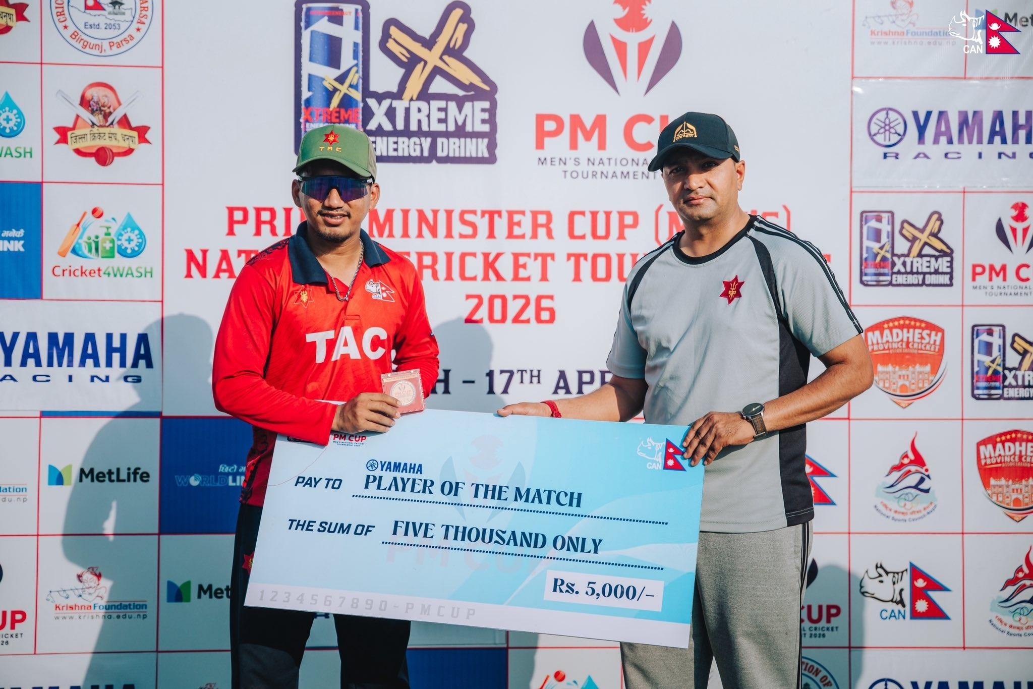 यस्तै, सोमबार जनकपुरको रामजानकी क्रिकेट मैदानमा भएको अर्को खेलमा नेपाल एपीएफ क्लबले सुदूरपश्चिम प्रदेशलाई ४५ रनले पराजित गरेको छ । टस हारेर सुरुमा व्याटिङ गरेको एपीएफ क्लबले सुदूरपश्चिमलाई २६० रनको लक्ष्य दिएको थियो । एपीएफ क्लबले निर्धारित ५० ओभरमा ९ विकेट गुमाएर २५९ रन बनाएको थियो । एपीएफ क्लबका सन्दिप जोराले ५५, लोकेश बमले ४७, दीपक बोहराले ४६ र सुमित महर्जनले ४१ रन बनाए । सुदूरपश्चिमका कप्तान शेल मल्लले ३ विकेट, अशोक धामी र विकास अग्रीले समान २/२ विकेट लिए ।