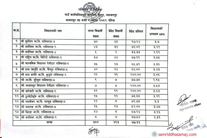 पालिकाले सार्वजनिक गरेको विद्यालयगत नतीजा ।