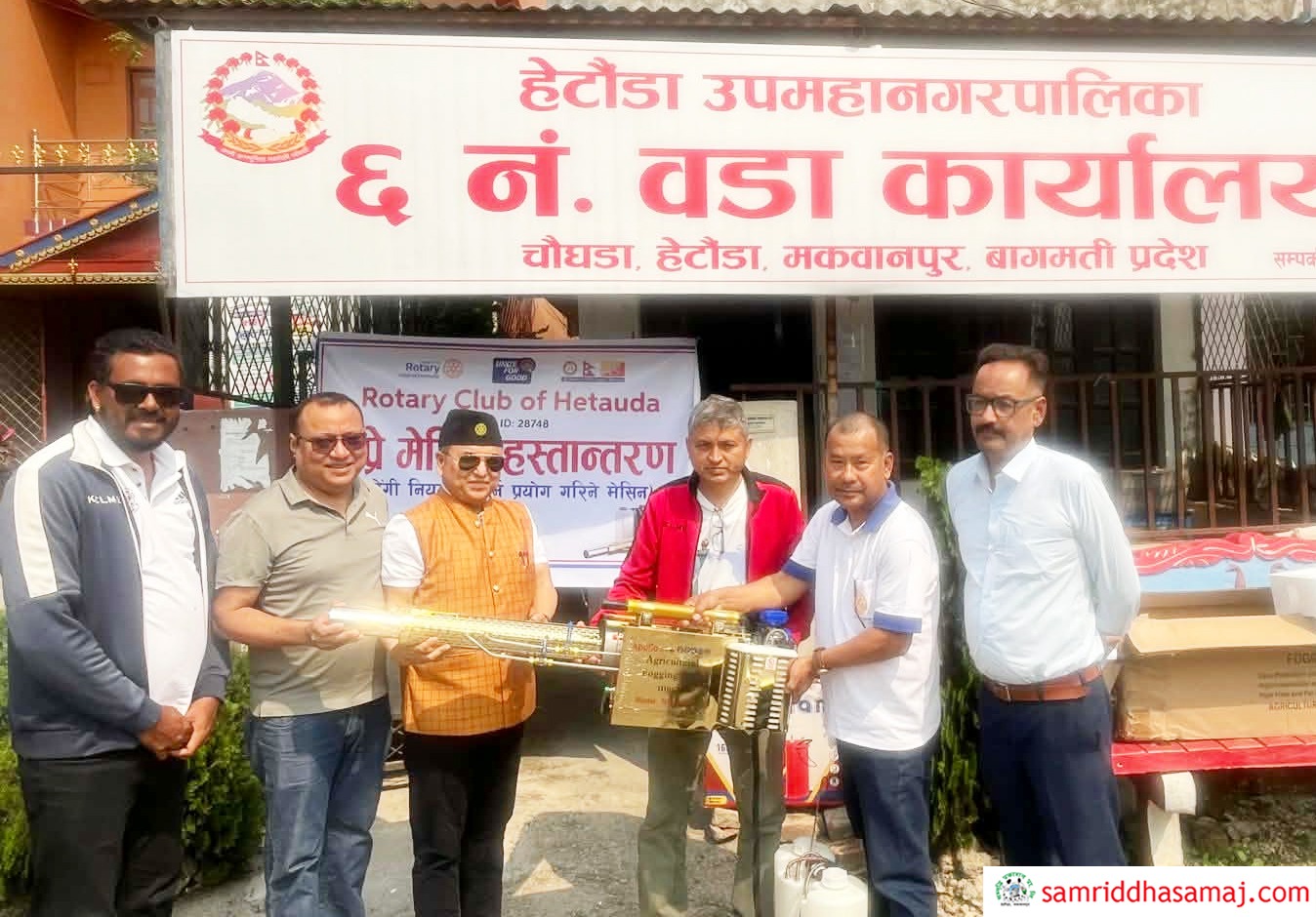 हेटौँडा : नेपालमा बढिरहेको डेङ्गी रोग संक्रमण नियन्त्रण गर्न रोटरी क्लब अफ हेटौँडाले हेटौँडा उपमहानगरपालिका वडा नम्बर ६ लाई डेङ्गी नियन्त्रण उपकरण हस्तान्तरण गरेको छ । सोमबार वडा अध्यक्ष विष्णु दाहाललाई उपकरण हस्तान्तरण गरिएको रोटरी क्लब अफ हेटौँडाका अध्यक्ष प्रमेश प्रधानले जानकारी दिनुभयो ।