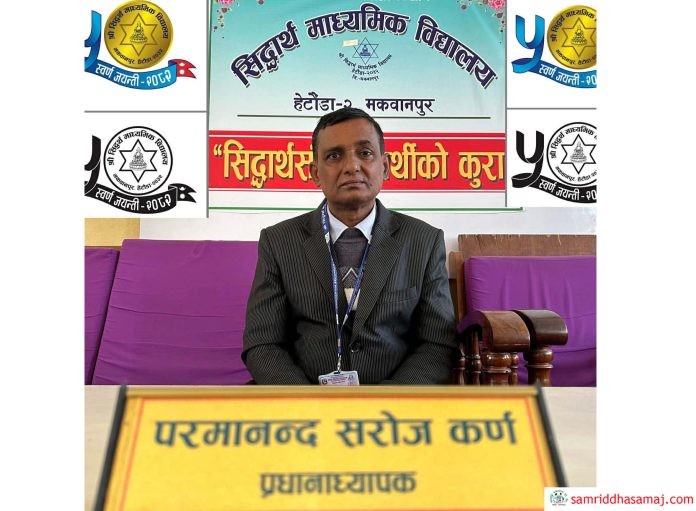 हेटौँडा : हेटौँडा–२ स्थित सिद्धार्थ माध्यमिक विद्यालयले शैक्षिक सत्र–२०८२ मा स्वर्णजयन्ती मनायो । स्वर्णजयन्ती मनाउँदै गर्दा यो ऐतिहासिक कार्यक्रमको अभिभावकत्व लिन वैधानिक विद्यालय व्यवस्थापन समिति भने थिएन । वडा नम्बर २ कार्यालयले नै कार्यक्रमको अभिभावकत्व लिँदै कार्यक्रम सम्पन्न गर्यो ।