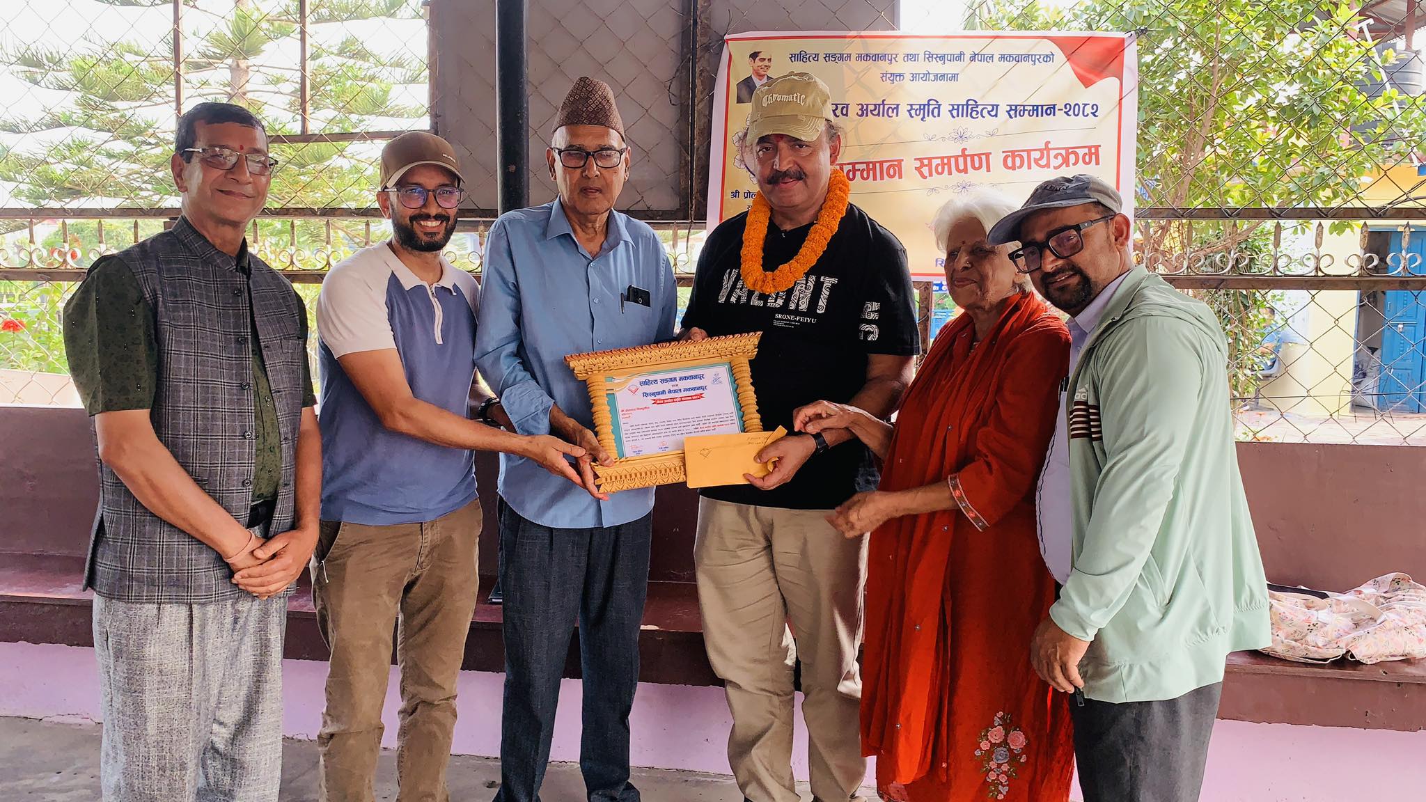 भैरव अर्याल स्मृति साहित्य सम्मान साहित्यकार प्रोल्लास सिन्धुलीयलाई प्रदान गरिदैँ गरेको तस्वीर ।