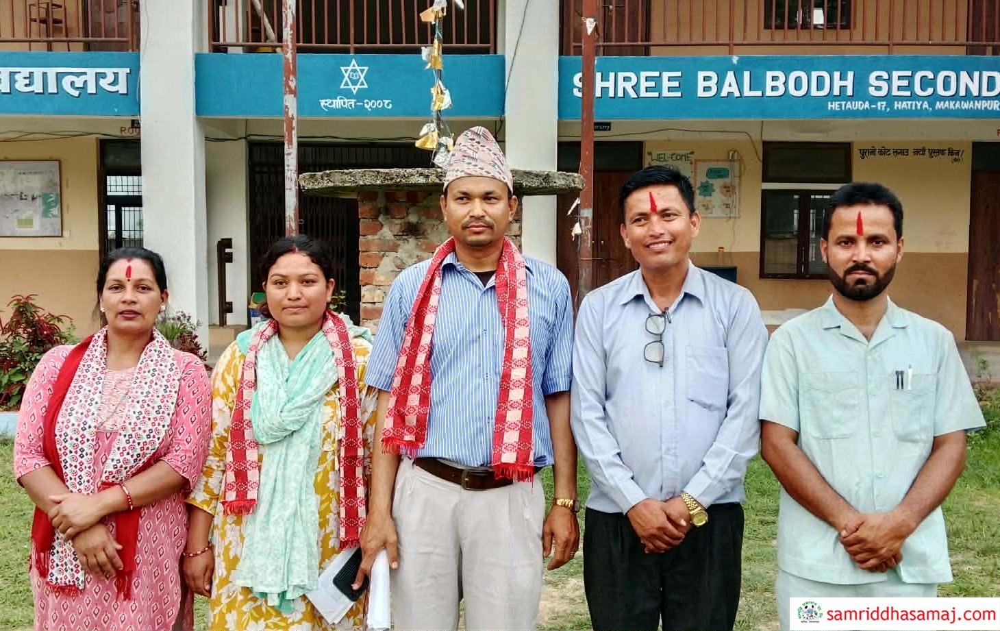 हेटौँडा : हेटौँडा–१७, हटियास्थित बालबोध माध्यमिक विद्यालयमा नयाँ व्यवस्थापन समिति गठन भएको छ । शनिबार भएको ६९औं अभिभावक भेलाले नयाँ समिति चयन गरेको हो । अभिभावक भेलाबाट अभिभावकमध्येबाट ४ जना सर्वसम्मत सदस्य चयन भएको प्रधानाध्यापक दीपकलाल श्रेष्ठले जानकारी दिनुभयो ।